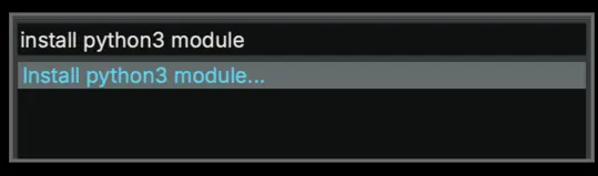Figure 1. Install Python 3 Module Palette Option - Press Enter to bring up the Install python3 modules window, as shown in Figure 2.