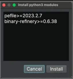 For the Binary Ninja components of this workshop, you will need a personal, commercial or enterprise version of Binary Ninja. This will give you access to the Python API that we will be using to extract information from the Binary Ninja database. In addition to Binary Ninja, we will be using two Python modules to extract a resource from the packed binary (https://github.com/erocarrera/pefile) and carve embedded Portable Executables (https://github.com/binref/refinery). To add these modules in Binary Ninja, perform the following steps:
